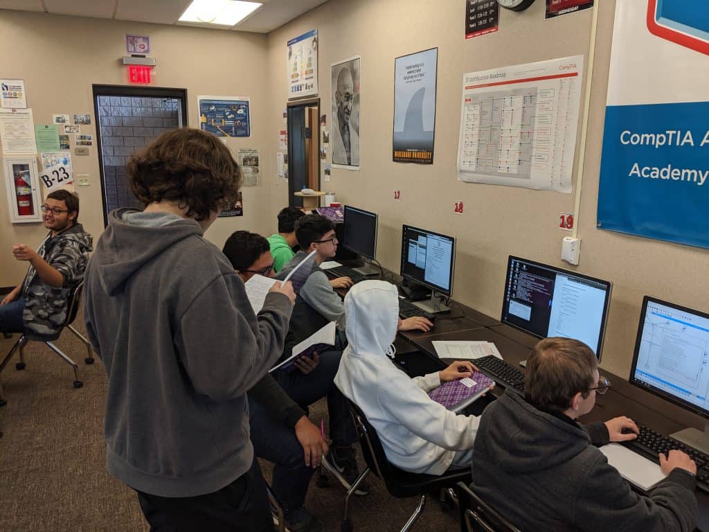 This year, our club has five teams competing in CyberPatriot! The teams have diligently been making their way through the images and today is final day to look at these and practice. This Saturday will be our first practice round–then on to Round 1!