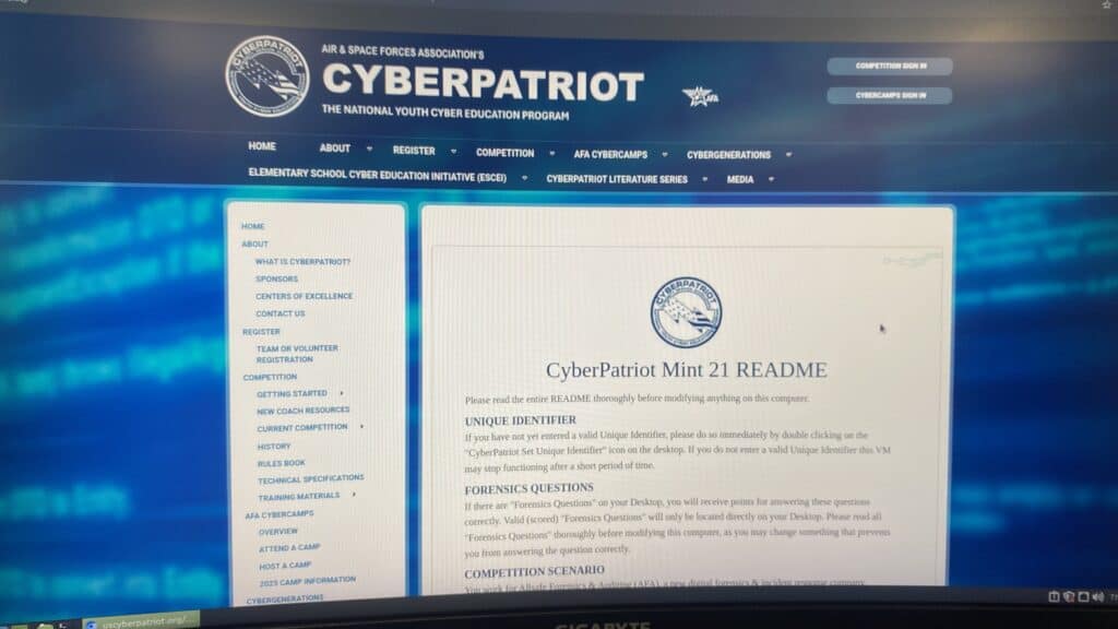 This meeting got us our one and only glimpse into what Cyber Patriot would hold! The sneak peek round is held once a year and only open during that day, luckily our meeting fell right on this day! This time around it was a mixture of Windows and Linux Mint, but both were official one time Cyber Patriot images.