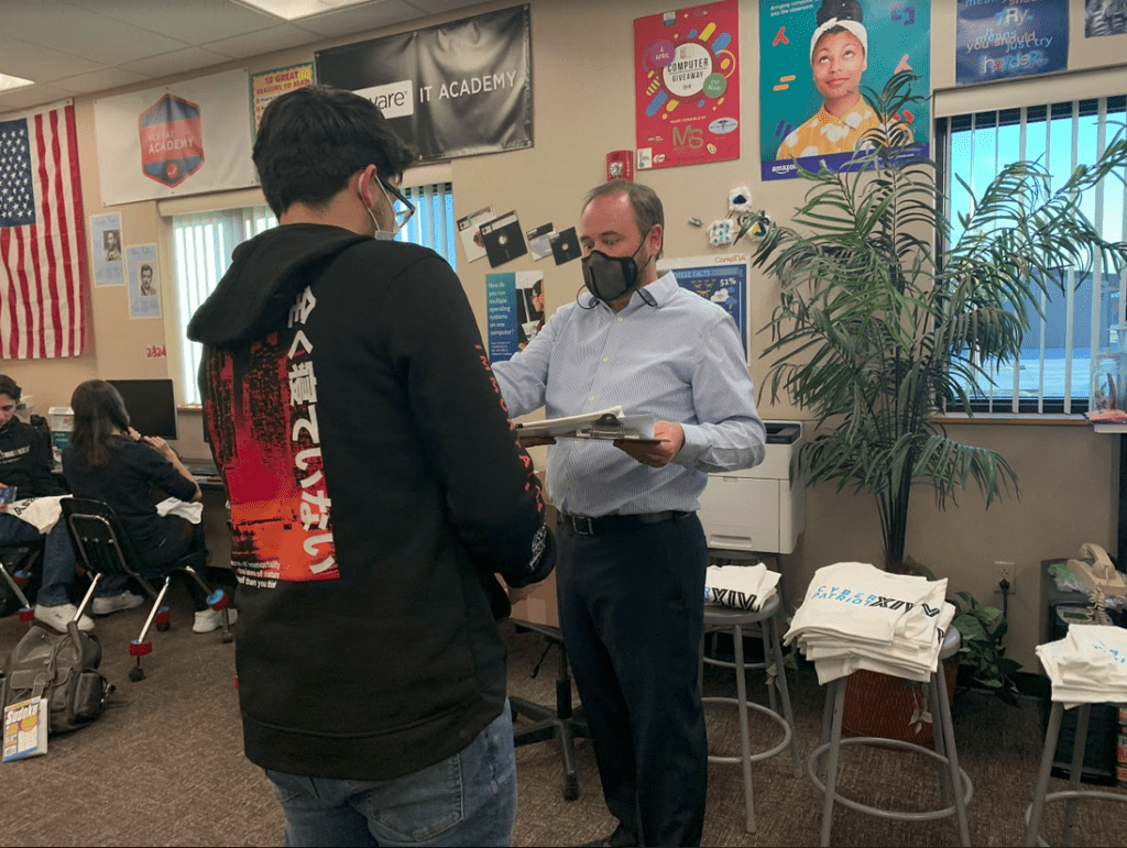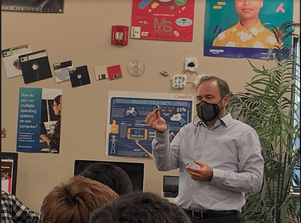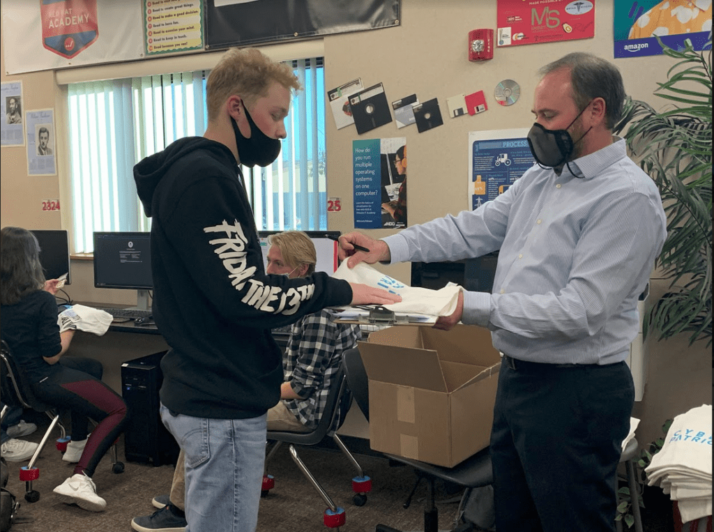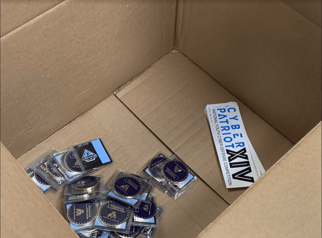 After that, Coach Smith has announced that the package that CyberPatriot has sent to each team has arrived. It includes CyberPatriot shirts, a sticker, and a challenge coin. Each member would be receiving one of each which is a way of rewarding them for participating in this year’s CyberPatriot Competition.