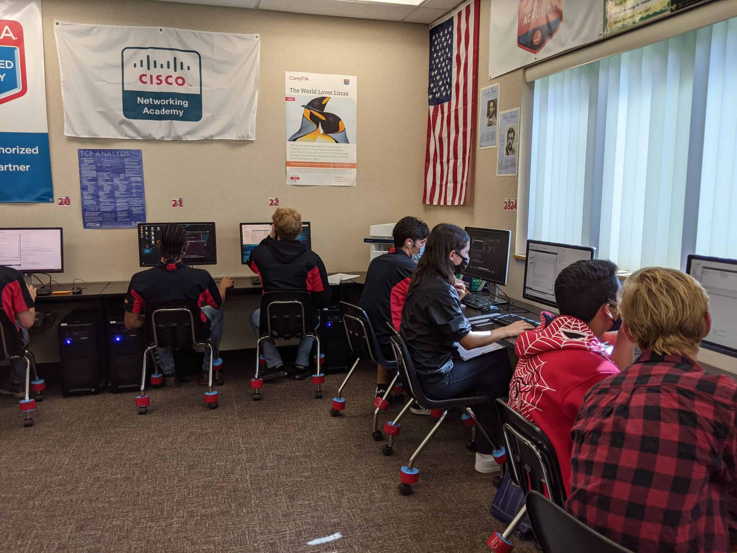 At 9:50 A.M on Saturday, October 23rd, the gate was opened to our CyberPatriot participants so they could be able to get a head start on their images for Round 1. Members were able to arrive on time and were able to get started a little over 10:00 A.M. With the plans that teams were able to discuss Wednesday, the last meeting before Round 1, they were able to organize themselves and work on their images.